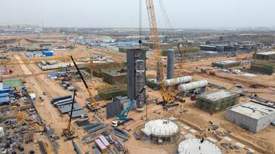 值得一提的是,項目核心乙醇裝置長周期設備陸續(xù)交貨到場安裝就位;土建施工總體完成73%,主要建筑物開始裝修,落地設備基礎交付安裝,壓縮機廠房及其基礎施工正在按計劃進行;裝置安裝工作全面推進,7臺反應器全部安裝完成,核心塔器正進行現(xiàn)場安裝攻堅。與此同時,熱動力站也在快馬加鞭的進行,目前鍋爐汽輪機房主體結構施工和裝修正已同步啟動,1號鍋爐鋼結構安裝完成,鍋爐及附件基本安裝完畢;2號、3號鍋爐正進行鍋爐鋼結構安裝,全力為今年11月鍋爐點火做好準備。