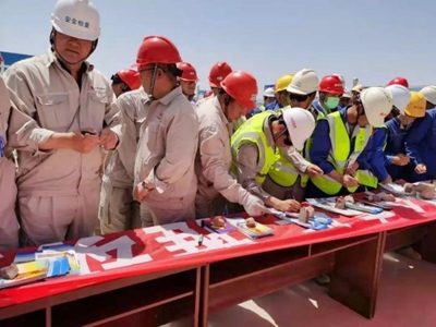 啟動儀式上,公司總經理助理田平漢在講話中強調,一是要重視開展安全生產月活動對安全生產工作的促進作用,全力維護項目安全穩定,為建黨100周年營造良好安全環境;二是要以“安全生產月”活動為契機,推動榆神乙醇項目的安全生產工作;三是要團結一致、凝心聚力扎實推進安全生產工作,確保實現全年安全生產目標;四是總包、施工分包商要各盡其責,重視安全、綠色、文明施工,做好現場環境保持。隨后,田平漢帶領與會的170多名總包、施工單位員工代表進行了安全宣誓,“我一定遵守安全規定,時刻注意安全,聽從指揮……”,鏗鏘有力的宣誓聲詮釋著項目參建人員對安全生產工作的態度和決心。