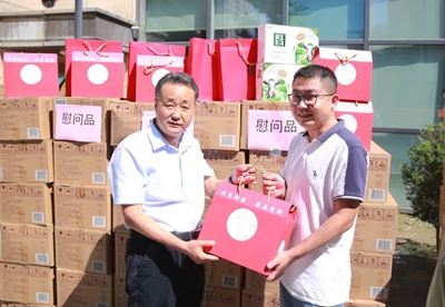 公司黨委副書記、工會主席景建民為職工送上牛奶、月餅、扶貧產品等慰問物資,感謝每位員工一直以來的辛勤付出。
