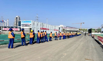 為確保設(shè)備、機械、材料按計劃投入,項目部積極與當?shù)卣⒎酪卟块T、建設(shè)單位、設(shè)備廠家等單位溝通協(xié)調(diào),了解防疫政策,避免因疫情影響導(dǎo)致運輸受阻。同時,為確保超限設(shè)備項目現(xiàn)場制作按計劃推進,項目部將辦公室、會議室全部作為工人宿舍,配備必要的生活、防疫物資,為封控作業(yè)的90余名工人提供健康、安全的現(xiàn)場食宿條件,確保設(shè)備制造不停歇。