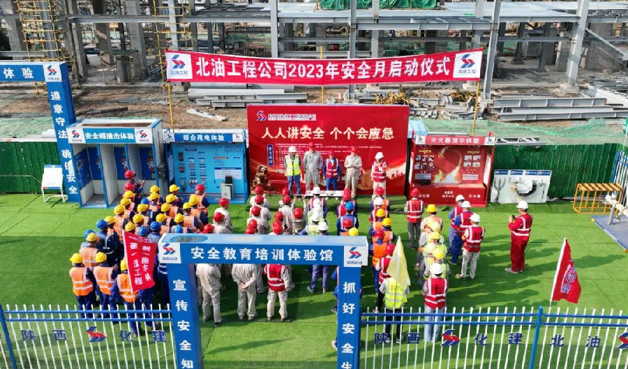 6月1日,北京石油化工工程有限公司在EPC總承包的安徽碳鑫科技甲醇綜合利用項目乙醇聯(lián)合裝置項目現(xiàn)場舉辦了2023年“安全生產(chǎn)月”啟動儀式暨“安全承諾簽署”活動。公司副總經(jīng)理、總工程師曹堅出席并宣布2023年“安全生產(chǎn)月”活動啟動。項目建設(shè)單位、監(jiān)理單位、總包質(zhì)量安全管理部和施工管理部、施工單位相關(guān)人員參會。