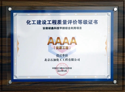 近日,由北京石油化工工程有限公司(簡稱:北油工程)總承包的安徽碳鑫科技甲醇綜合利用項目乙醇聯合裝置,獲得2024年度,中國化工建設企業協會組織評選的化工建設工程質量總承包優質工程和設計單位優質工程。