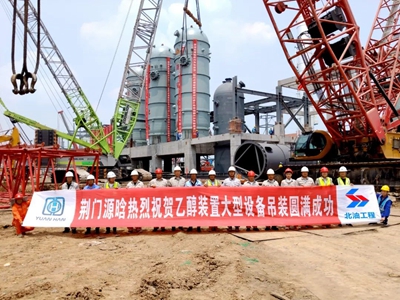 荊門源晗乙醇項目核心反應器全部吊裝就位