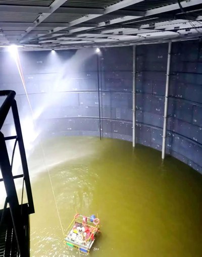 目前,項目1、2號罐開始注水試驗,3、4號罐主體焊接已處于收尾階段,4臺儲罐水壓試驗計劃38天完成。充水期間,作業人員對16個沉降觀測點進行測量,并對罐體進行檢查,直至沉降穩定。