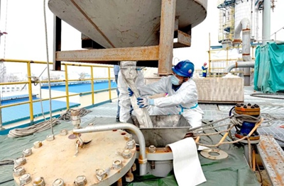 為確保作業安全高效推進,項目部提前進行全面統籌部署。組織安全技術骨干嚴格驗收反應器內部結構及準備工作,確保設備達標;召開安全技術交底會,細致培訓裝填流程、操作規范及應急處置方案,強化人員安全意識與技能,堅守"安全第一、質量為本"準則,保障裝填零差錯、無隱患。